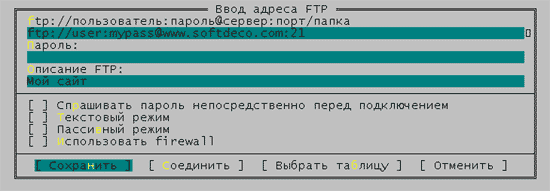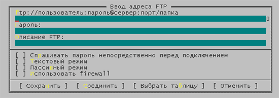 - Теперь вводим наши данные в верхнюю строчку в виде: ftp://login:password@URL:port пример показан ниже.